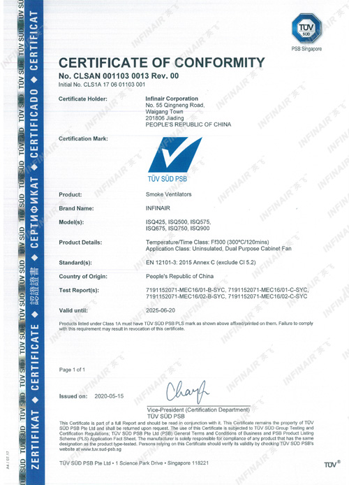 消防風(fēng)機(jī) TüV SUD認(rèn)證